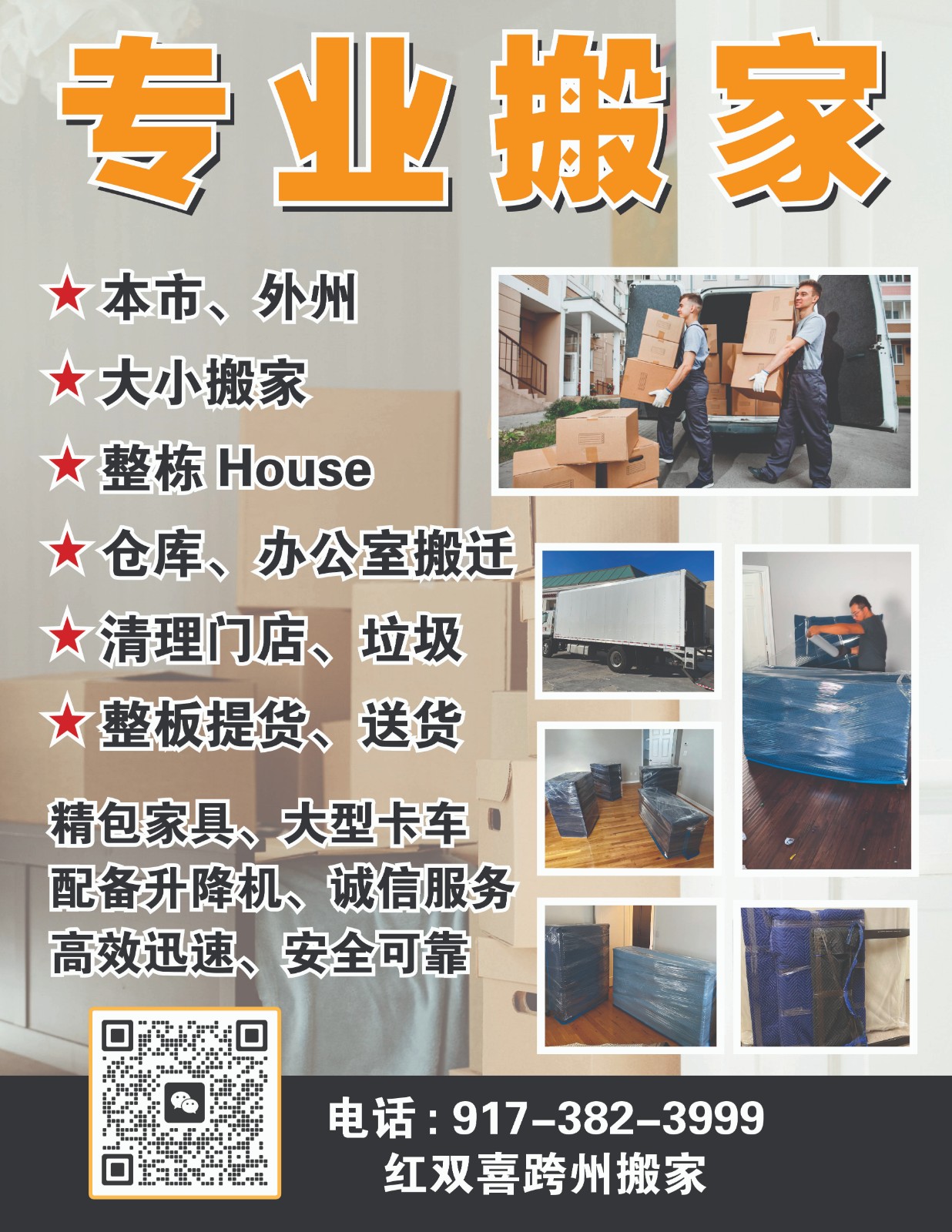 家庭搬家、专业搬家、跨州搬家,就找红双喜跨州搬家公司,电话 9173823999 [好评推荐搬家公司]